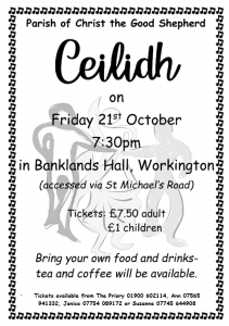 Ceilidh in Banklands Hall – accessed from St Michaels Road, Bring your own Food and Drink – Tea and Coffee will be available.