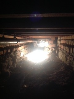 Now that the asbestos has been removed the heating engineers are now able to proceed with connecting the boiler to the radiators. Simple you say ! Well not quite the engineers are having to work in a very tight space which is proving challenging now that they are able to get under the floor. As you can see from the photos the space is very confined and full of rubble etc.
